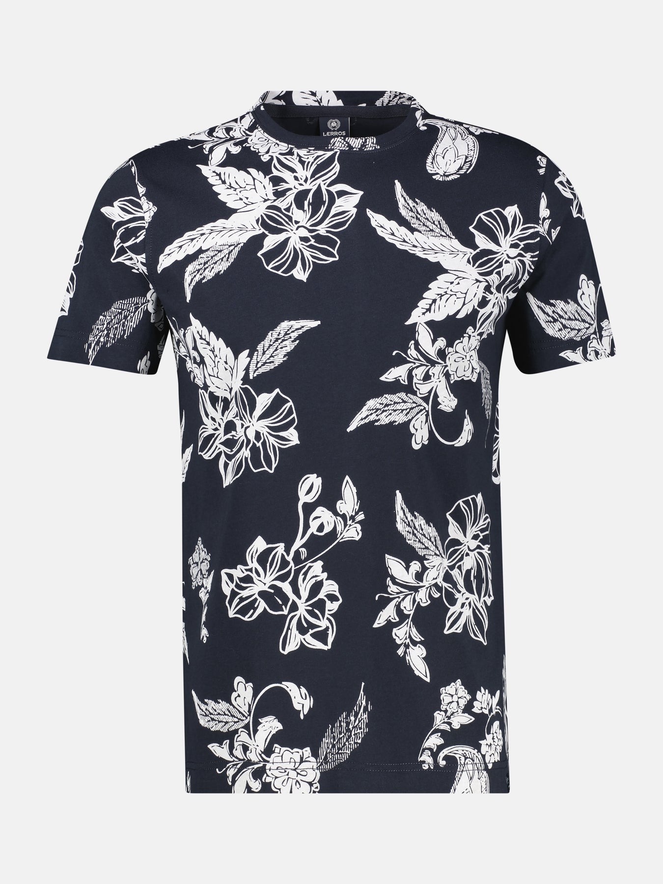 T-Shirt mit O-Neck, All over Print in grossen Größen von 3XL bis 6XL. Ein bequemes Halsbündchen und die weiche Baumwolle sorgen bei diesem T-Shirt für hohen Tragekomfort an heißen Tagen. Das LERROS-Badge am Bündchen unterstreicht die Qualität bei diesem auffälligen LERROS T-Shirt zusätzlich. Die feine Jersey-Struktur und das florale Muster verleihen dem Shirt für Herren ein angenehmes Hautgefühl und sorgen für die formstabile Passform ein modisches T-Shirt, das in keiner Garderobe fehlen darf. Zorg: