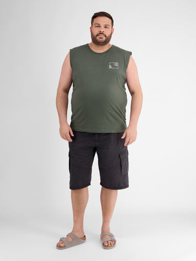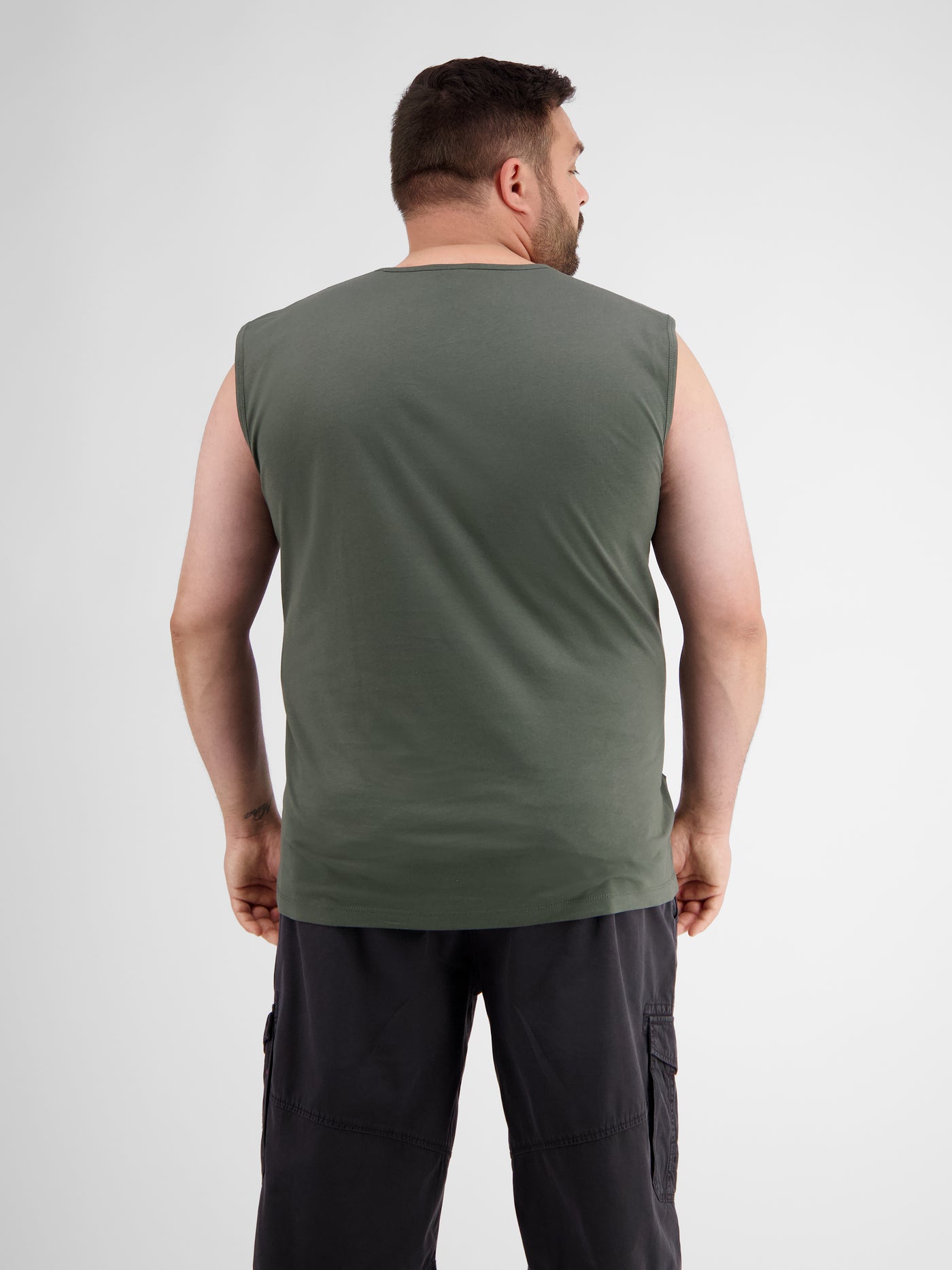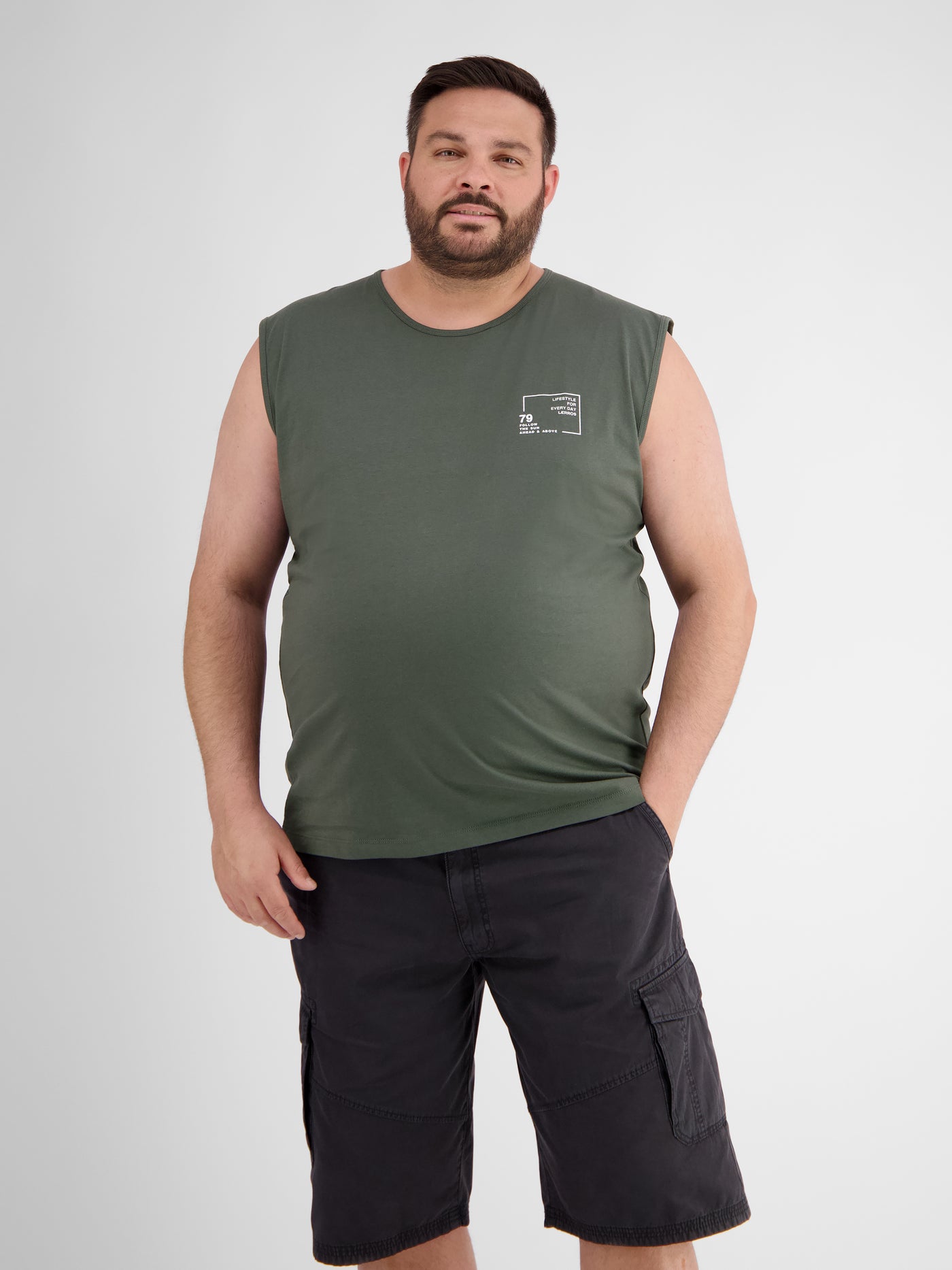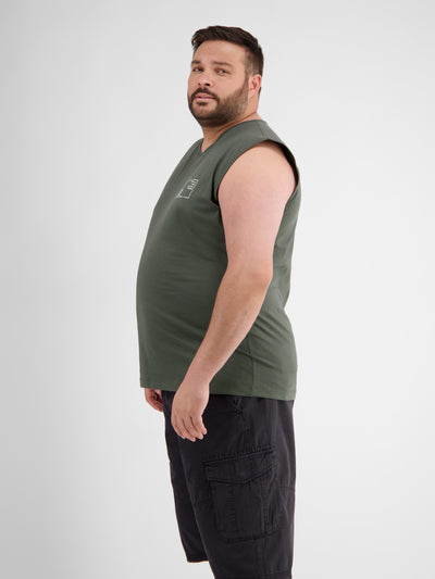 Klassieke tanktopstijl van LERROS met kleine print op de borst, ronde hals en wijde armsgaten - hier in grote maten. Het midzomershirt van zacht, hoogwaardig katoen is een musthave voor warme dagen.