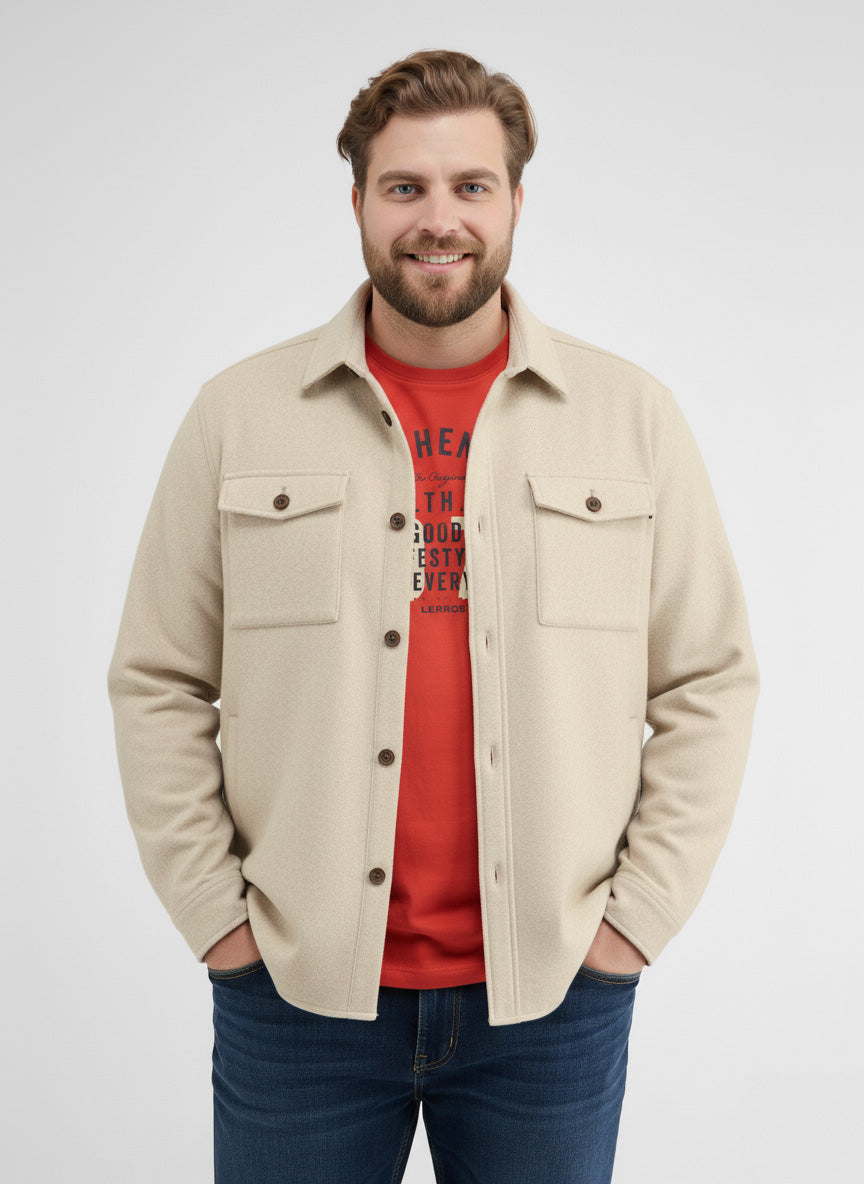 Urban style en mode-statement tegelijk: het LERROS overhemdjasje in wollook is gemaakt van robuuste synthetische vezels. De grote opgestikte zakken, contrasterende knopen en zijzakken transformeren dit overshirt in een lichtgewicht jasje, waardoor het overhemd perfect is voor de overgang naar de herfst. Zorg:
