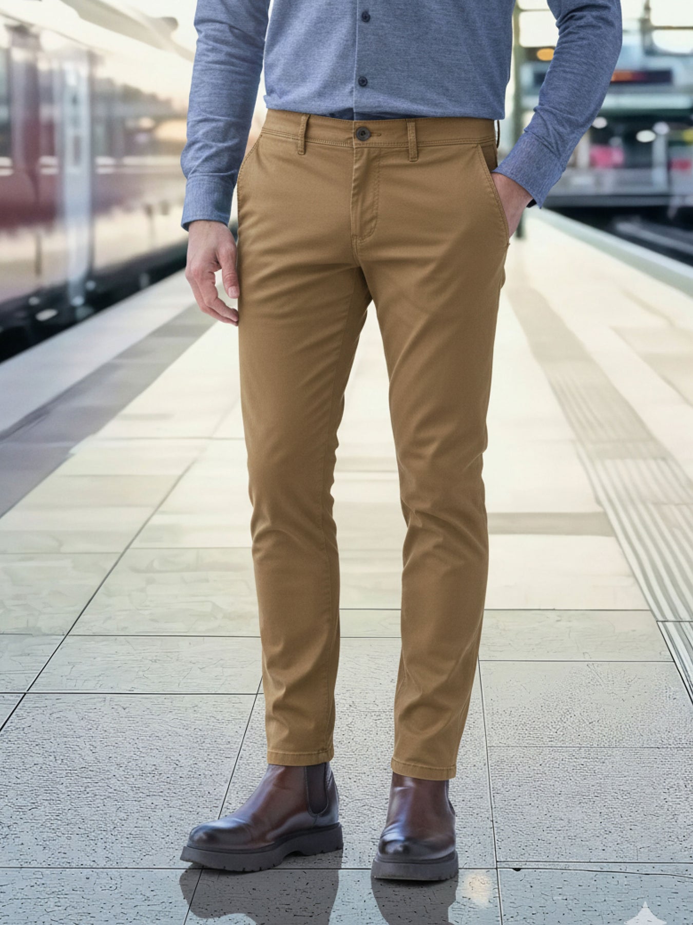 LERROS 5-Pocket Hose mit schmalem, eleganten Schnitt in erdigen Trendfarben. Die Hose aus atmungsaktivem Baumwoll-Mischgewebe in Jersey-Qualität mit Elasthan und Lyocell-Anteil sorgt für uneingeschränkten Bewegungskomfort. Die LERROS Hose mit je zwei Vordertaschen und Gesäßtaschen sowie genieteter Coin Pocket besticht durch ihr klassisches und funktionales Design. Typisch für eine 5-Pocket Hose in LERROS Qualität: dreifach vernähte Taschen aus Baumwollstoff und raffinierte Details wie farblich abgesetzte Kontrastnähte. Auch das ikonische LERROS Badge auf der Gesäßtasche darf bei dieser bequemen, eleganten Hose nicht fehlen.