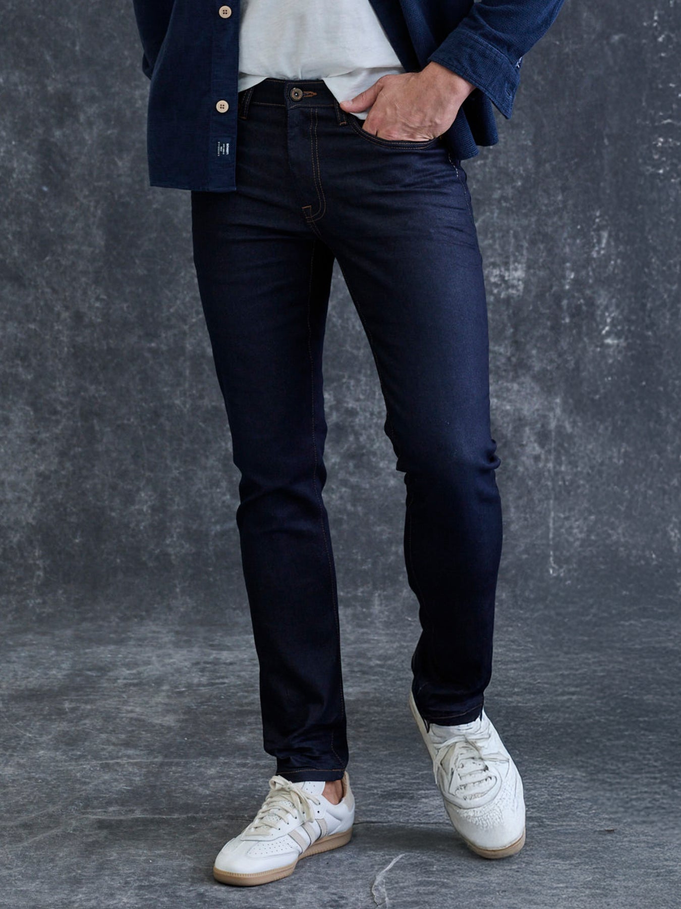 - Slim Fit: Wenn du eine körperbetonte, moderne Passform bevorzugst, sind unsere Slim Fit Denims genau das Richtige für dich. Sie betonen die Figur und bieten einen eleganten, schlanken Look.