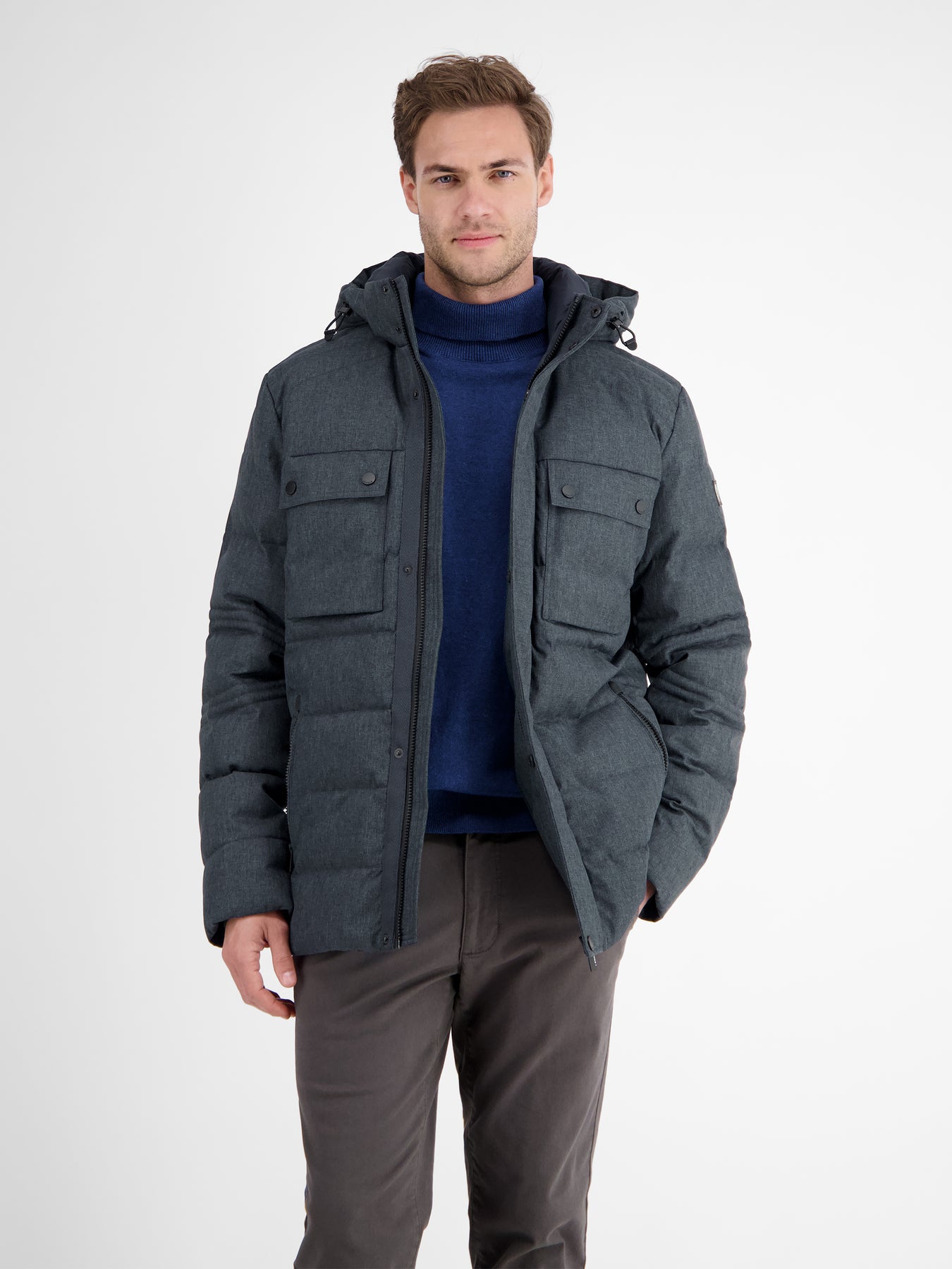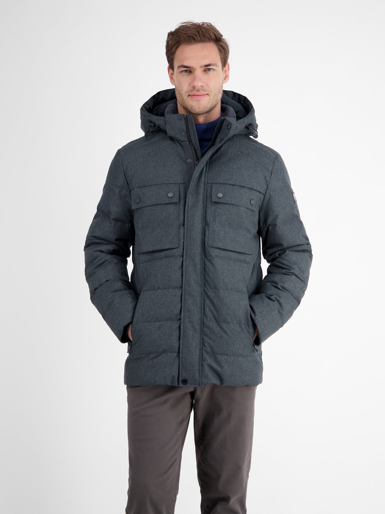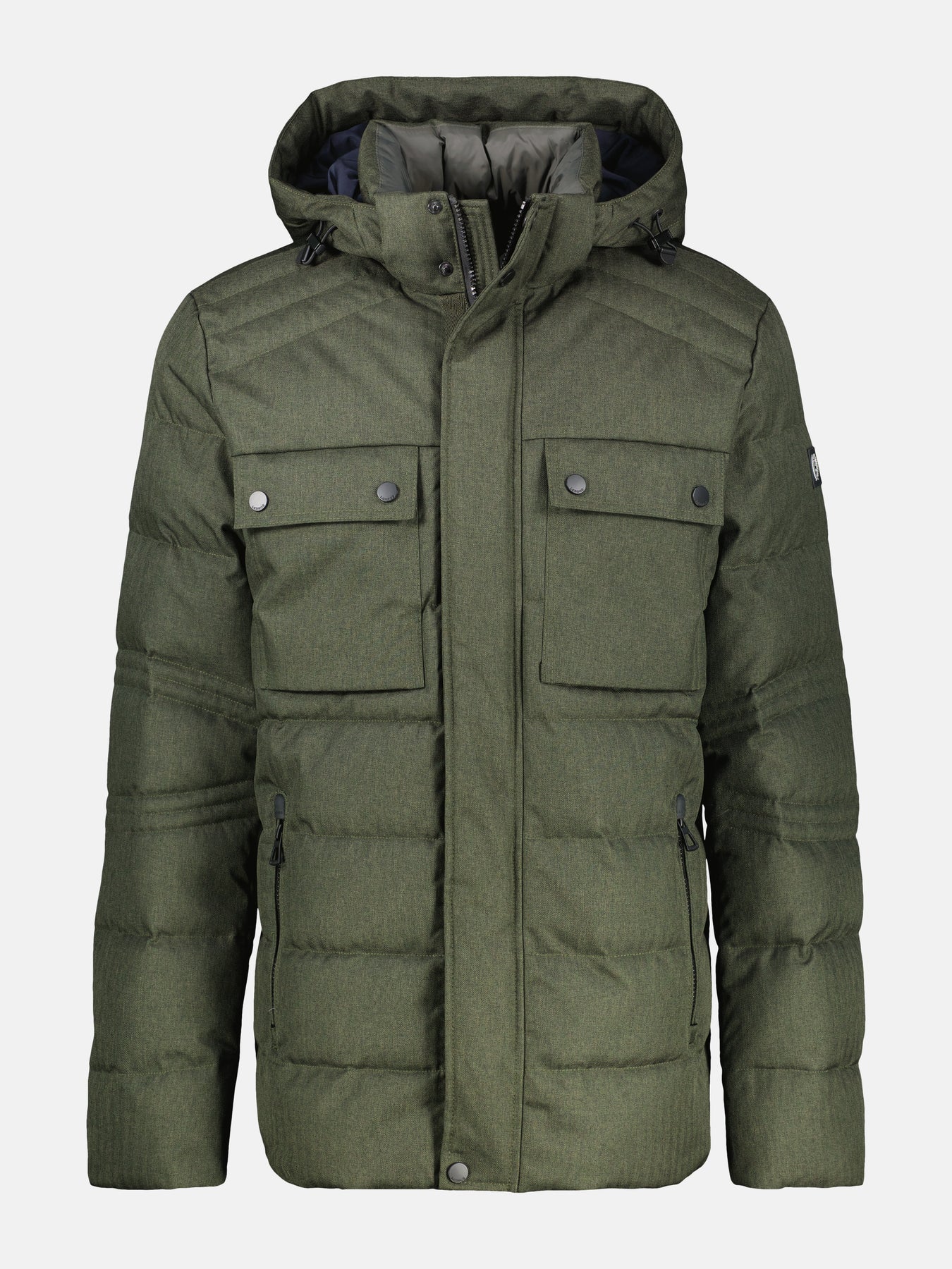 Die hochwertige Herren Fieldjacket in Woll-Optik liefert nicht nur Stil, sondern bietet auch praktische Funktionen, die bei jedem Wetter unterstützen. Die Atmungskaktivität sorgt für ein angenehmes Tragegefühl, ohne ins Schwitzen zu geraten. Die wind- und wasserabweisenden Eigenschaften halten trocken und geschützt. Das wärmende Taschenfutter sorgt ebenso für den allgemeinen Tragekomfor, wie die großen Tascheneingriffe und die abnehmbare Kapuze dieser hochwertig verarbeiteten LERROS Jacke.Pflege: