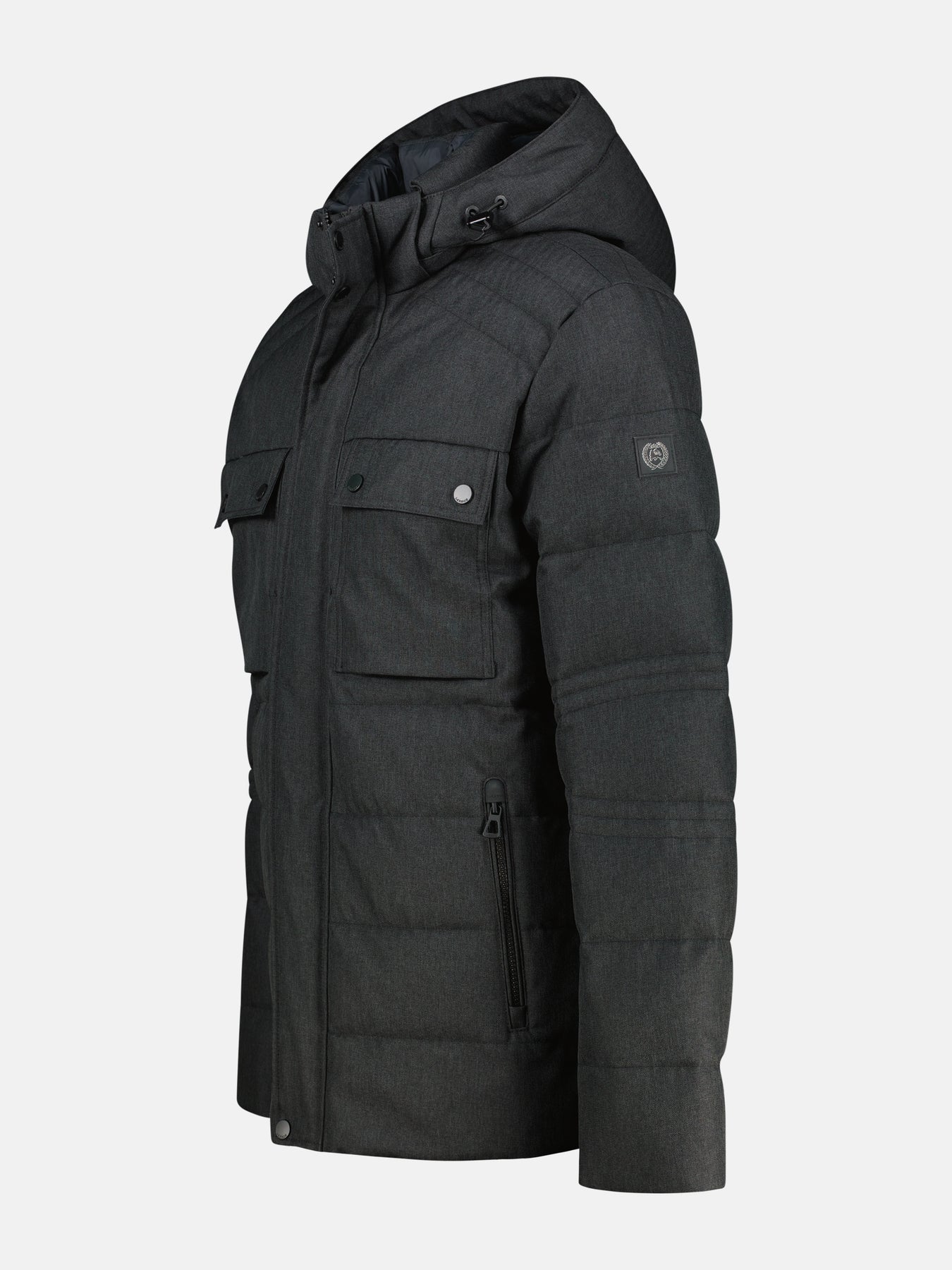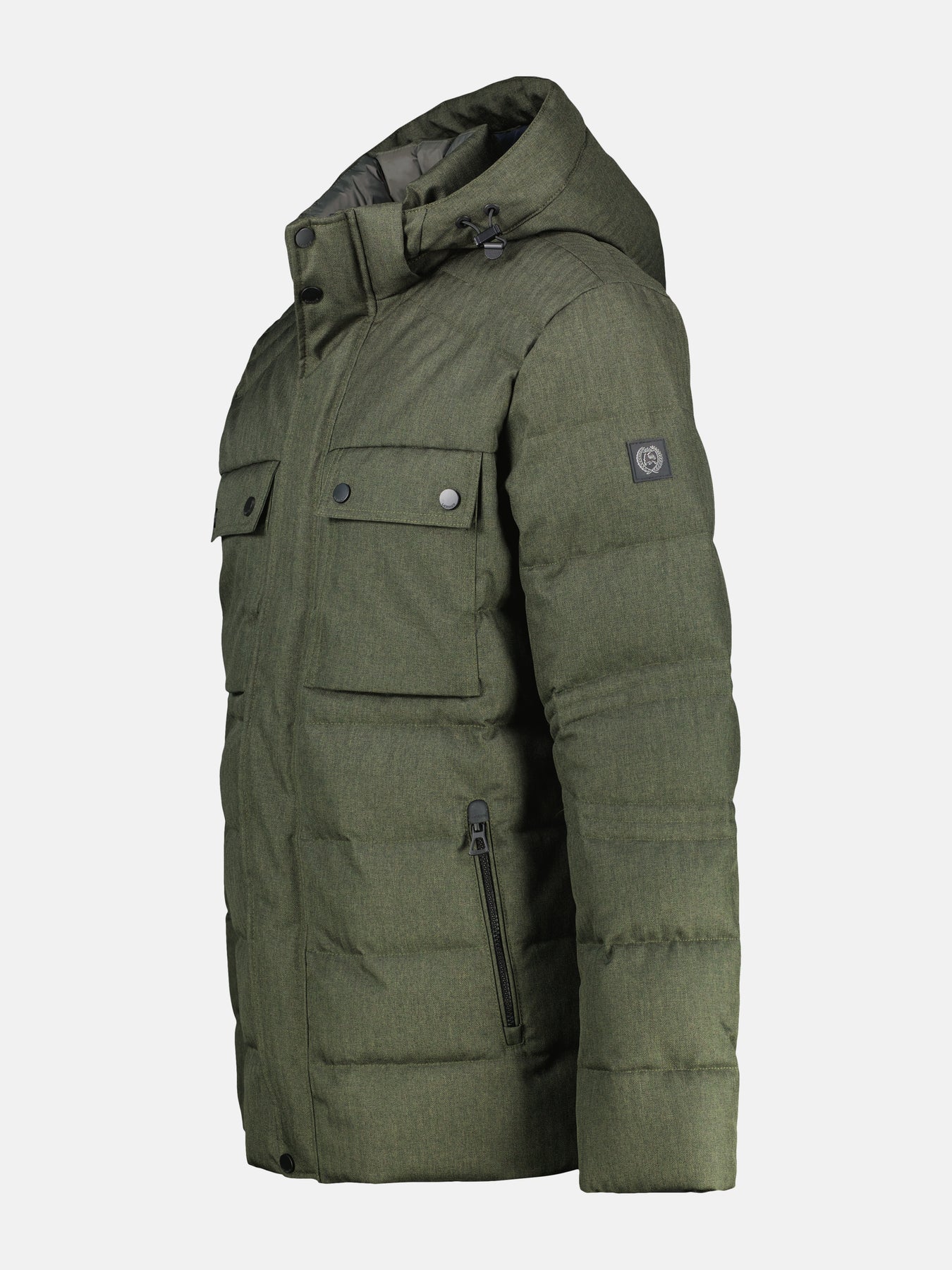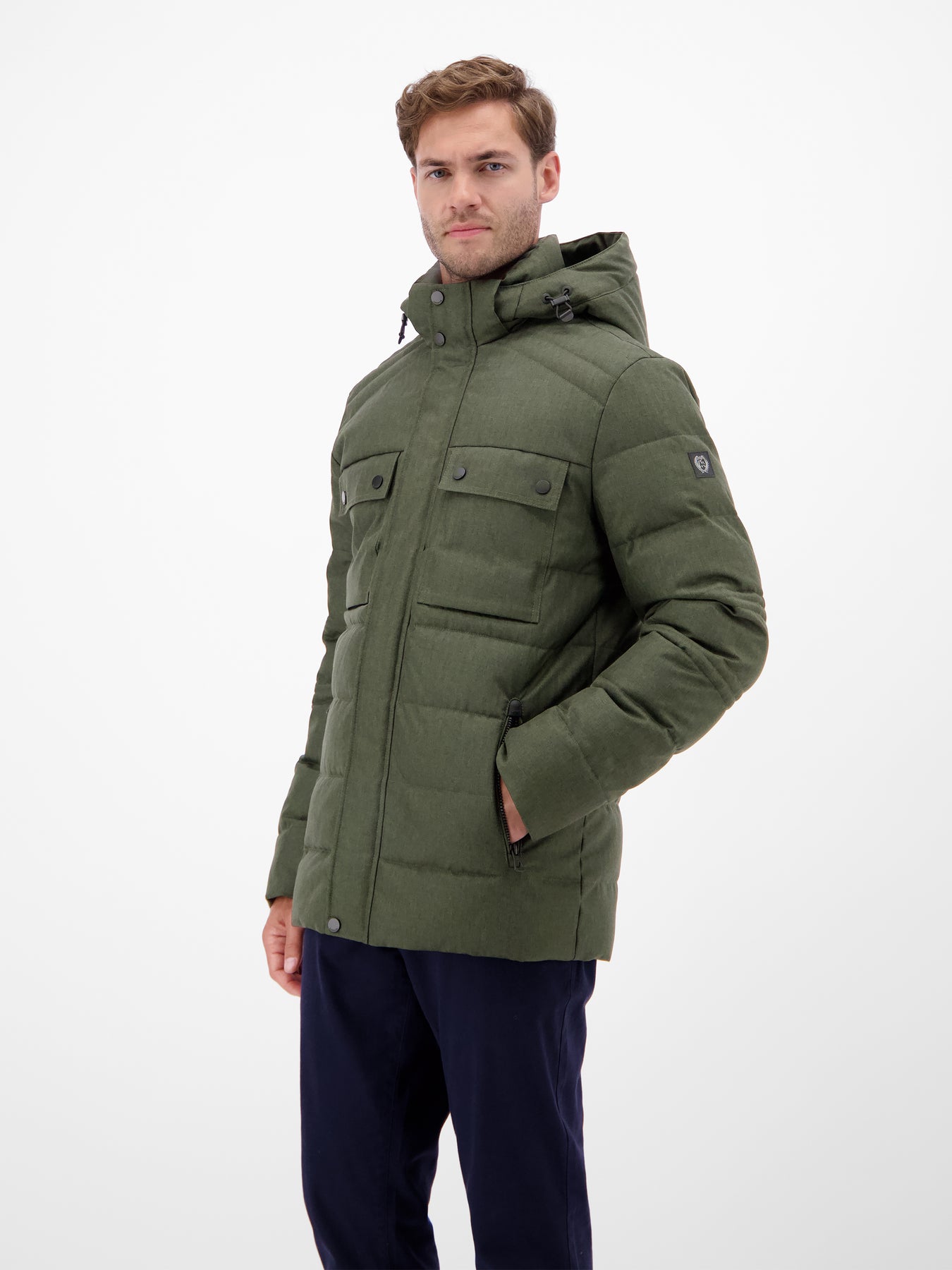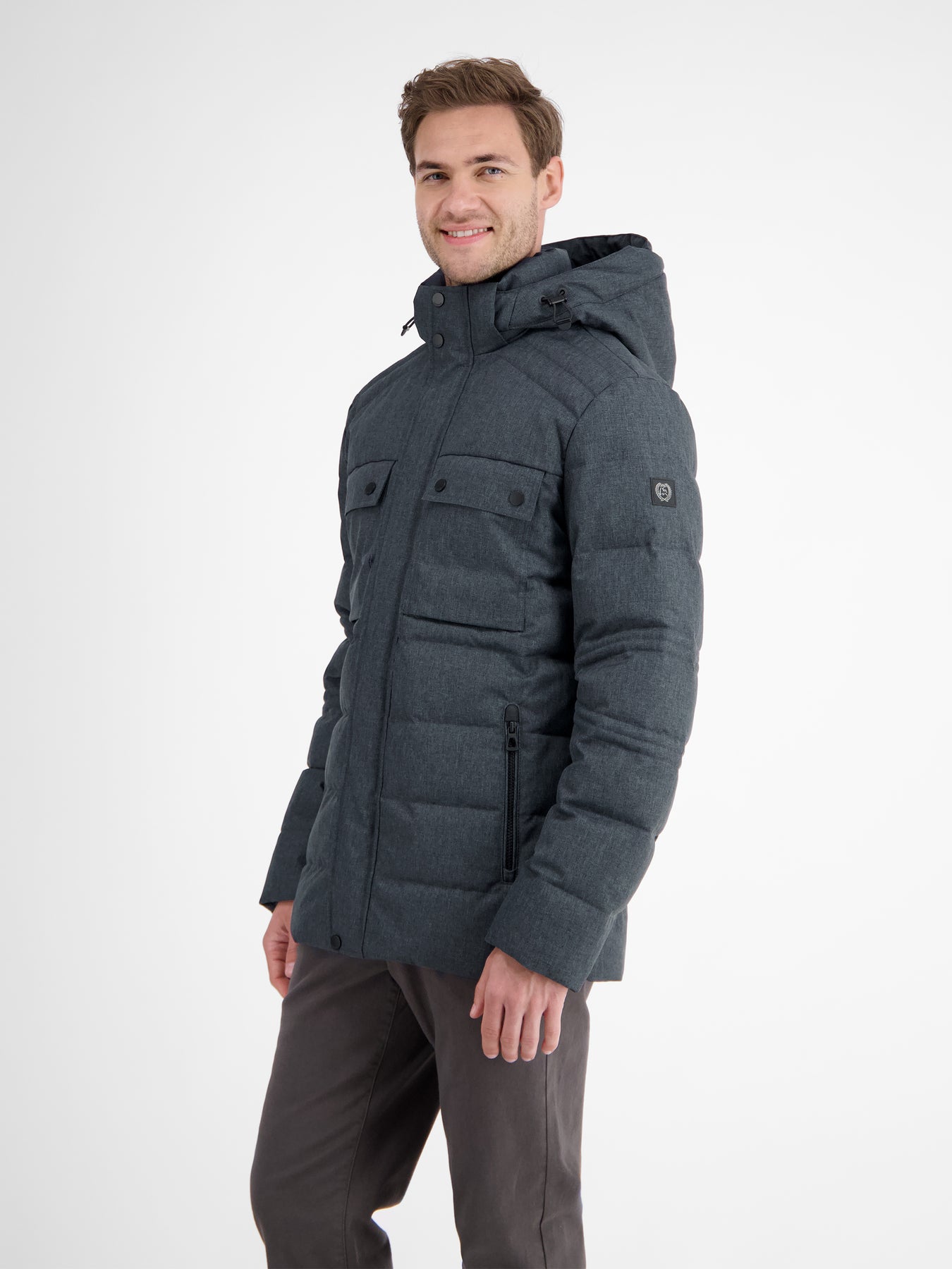 Die hochwertige Herren Fieldjacket in Woll-Optik liefert nicht nur Stil, sondern bietet auch praktische Funktionen, die bei jedem Wetter unterstützen. Die Atmungskaktivität sorgt für ein angenehmes Tragegefühl, ohne ins Schwitzen zu geraten. Die wind- und wasserabweisenden Eigenschaften halten trocken und geschützt. Das wärmende Taschenfutter sorgt ebenso für den allgemeinen Tragekomfor, wie die großen Tascheneingriffe und die abnehmbare Kapuze dieser hochwertig verarbeiteten LERROS Jacke.Pflege: