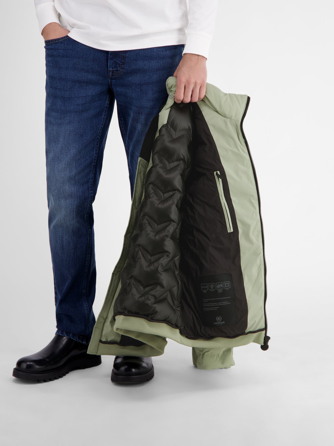 Sportlich, funktional, stilvoll: Die hüftlange Herren Steppjacke von LERROS mit abnehmbarer Kapuze vereint modernes Design und Outdoor-Performance. Mit wasser- und windabweisendem, atmungsaktivem Comfort-Stretch-Material schützt sie zuverlässig vor jedem Wetter und garantiert höchsten Tragekomfort. Praktische 2 Reißverschlusstaschen und eine verschließbare Innentasche bieten sicheren Stauraum für unterwegs. Mit einem Gewicht von nur 1000 Gramm sitzt die Jacke angenehm leicht – perfekt für Freizeit und Alltag. Neopren-Details setzen modische Akzente.