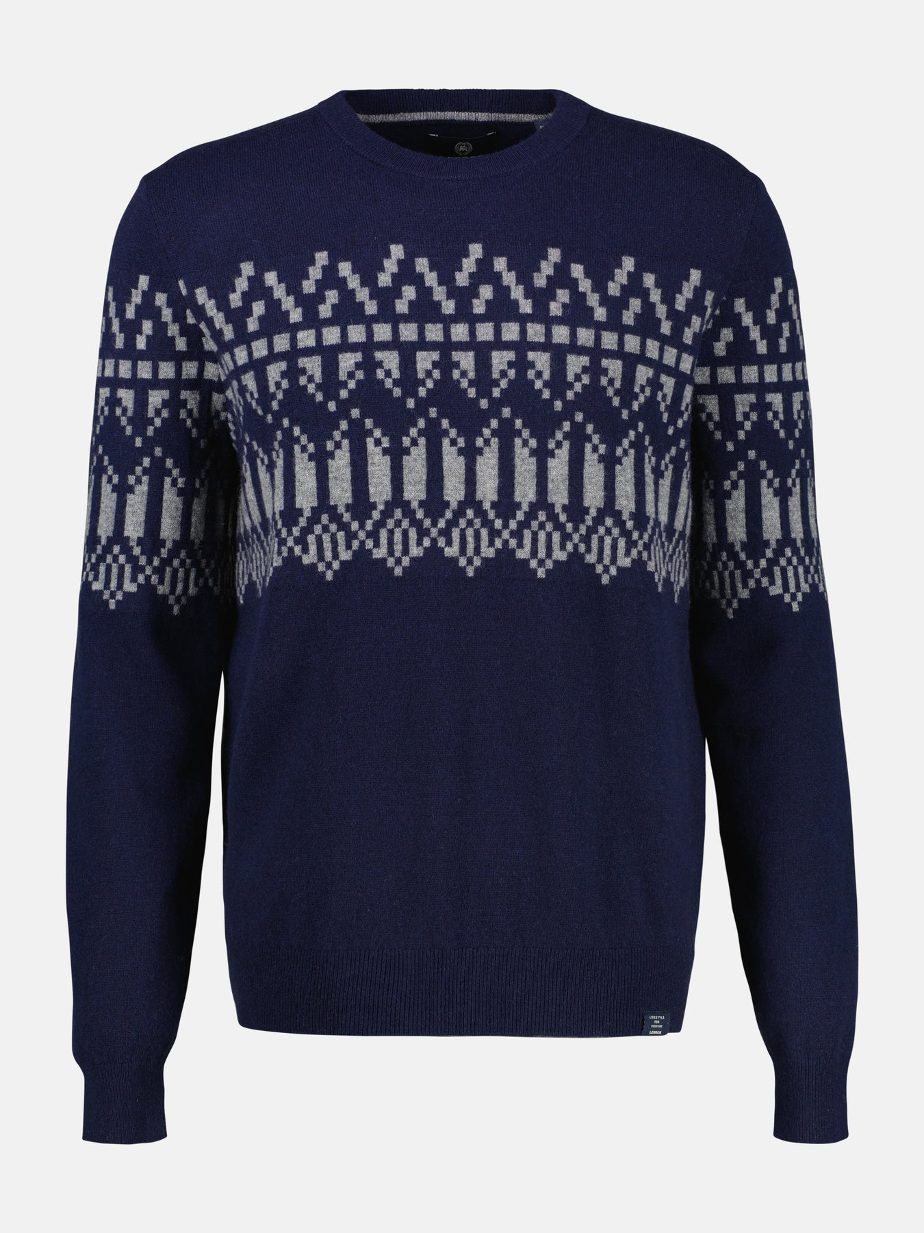 Dieser LERROS Crew-Neck-Pullover bringt den Vintage-Look in die Gegenwart - lässig, urban und stylisch interpretiert. Gefertigt aus einer weichen Wollmischung mit Kaschmir-Anteil, bietet er nicht nur Wärme und Komfort, sondern auch das gewisse Etwas im Outfit. Der markante Jacquard-Strick mit skandinavisch inspiriertem Muster verleiht dem Pullover Charakter, ohne dabei überladen zu wirken - perfekt für stylische Layer-Looks zwischen Kaffeehaus und Rooftop-Bar.Pflege: