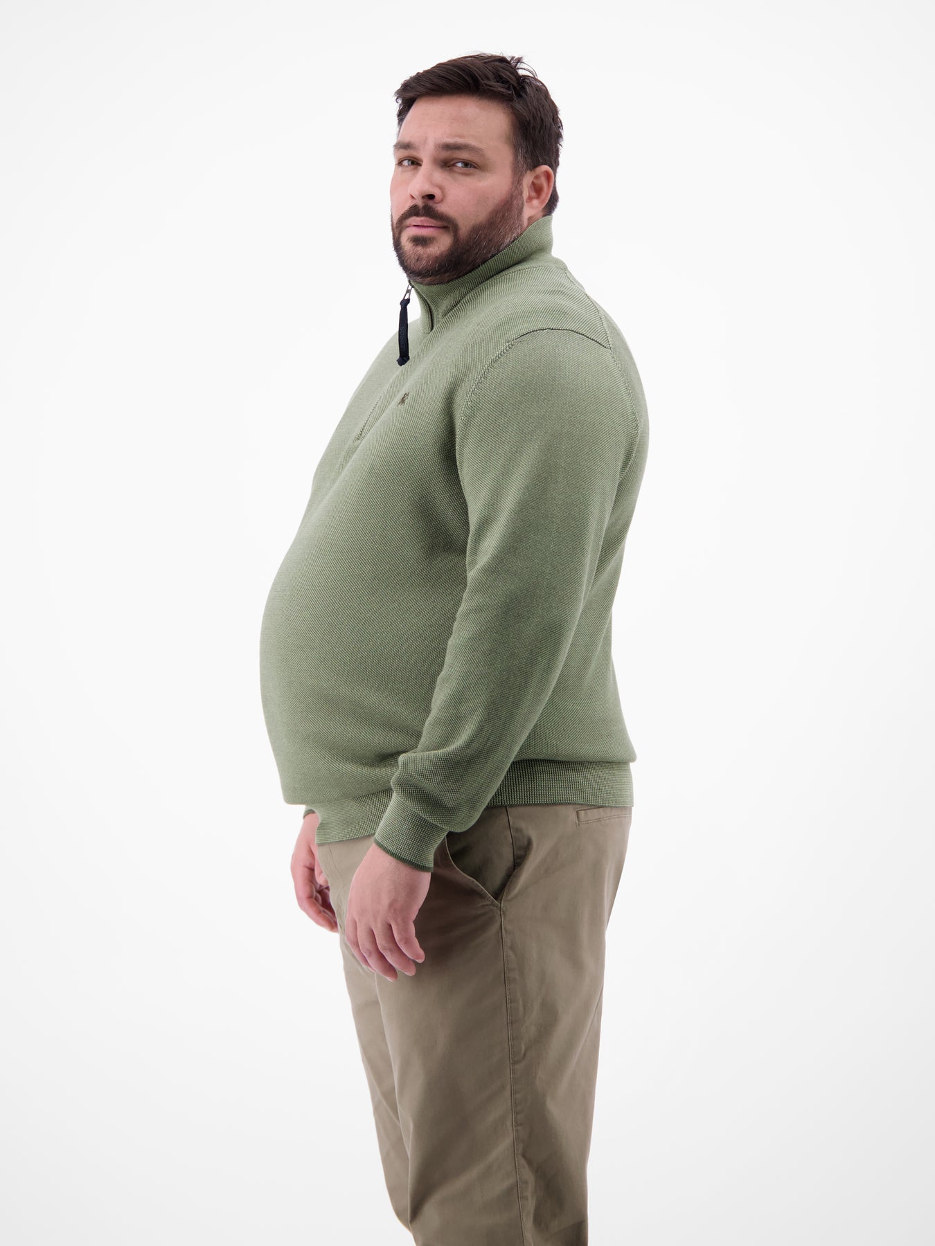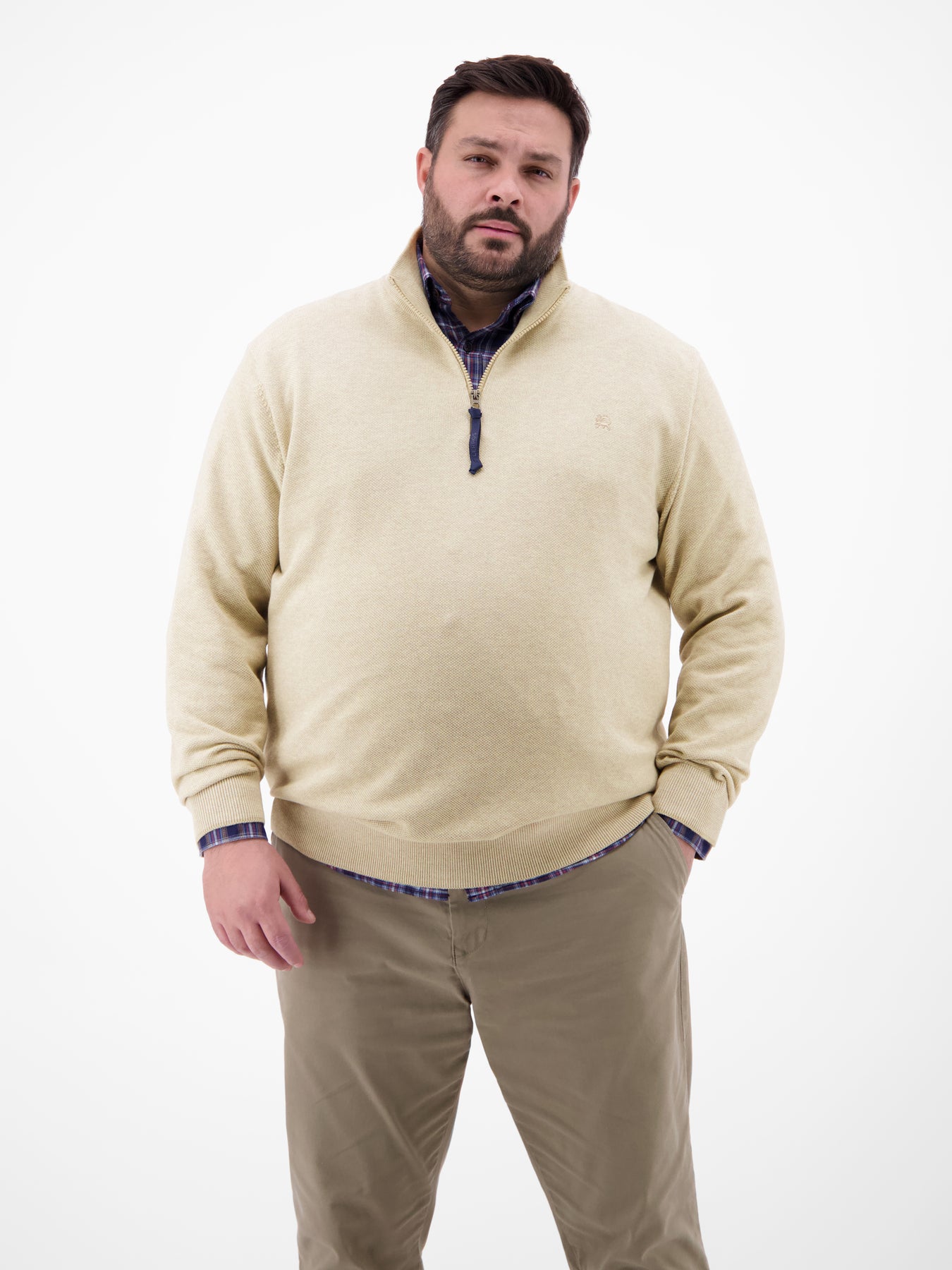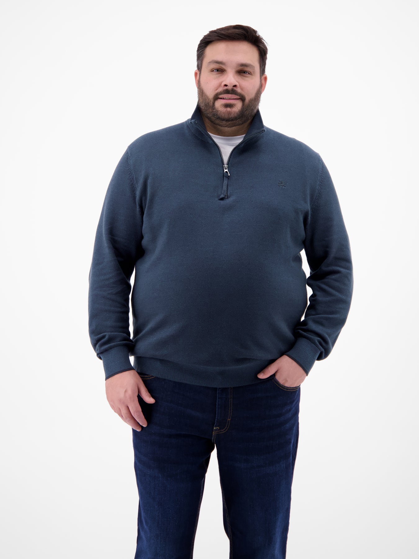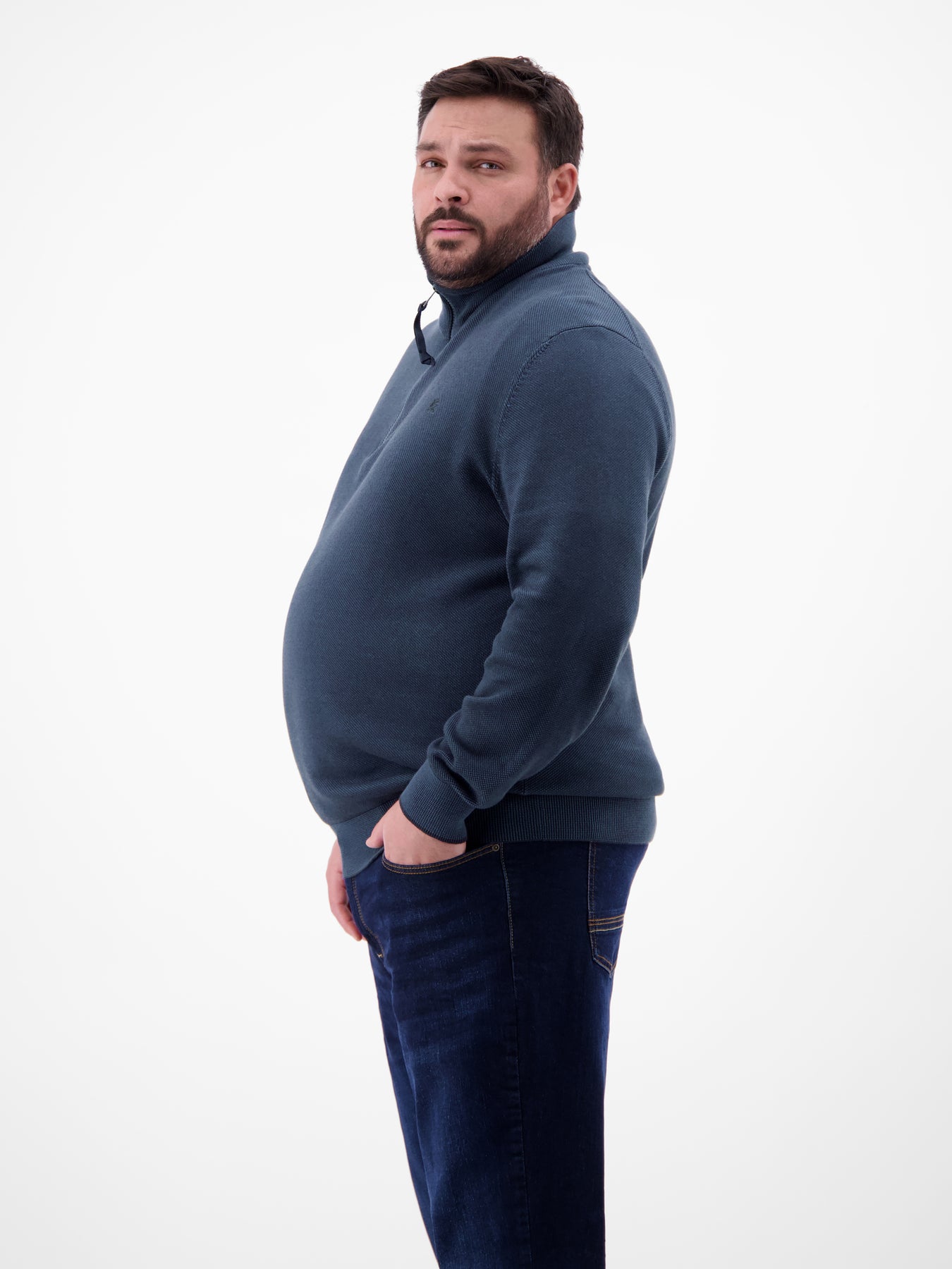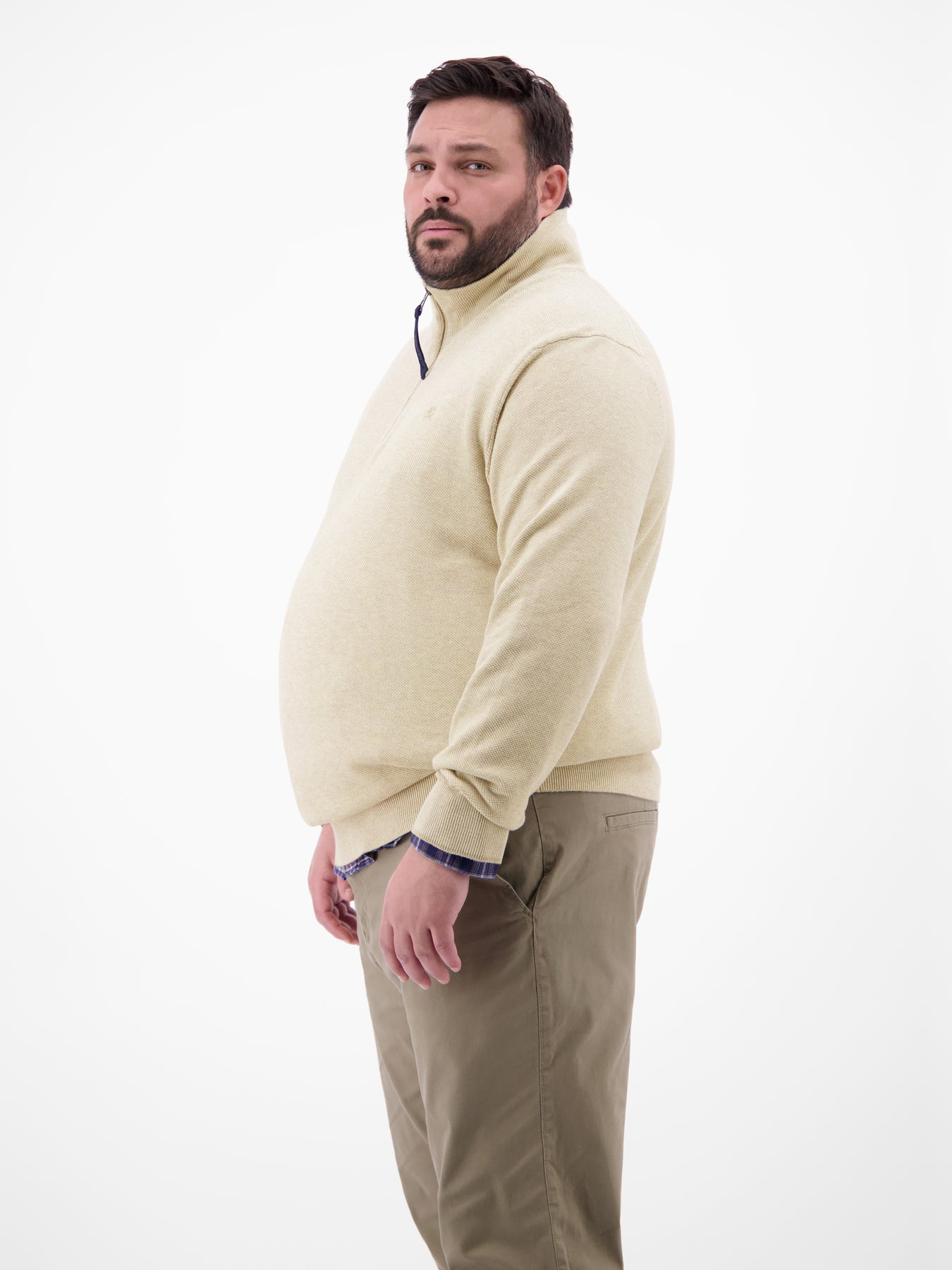 Der LERROS Strickptroyer für Herren aus BCI-Baumwolle wirkt durch seine Melange-Optik und die schmale Rippstruktur sehr sportiv. Die modische ÜBERGRÖSSEN-Passform in Verbindung mit dem klassischen Stehkragen lässt den Pullover schnell zum bequemen STYLE FOR EVERY DAY werden.