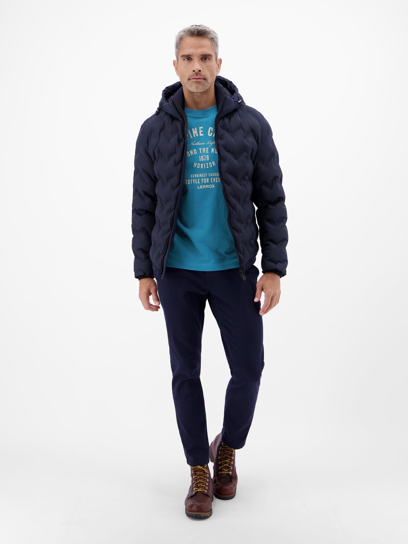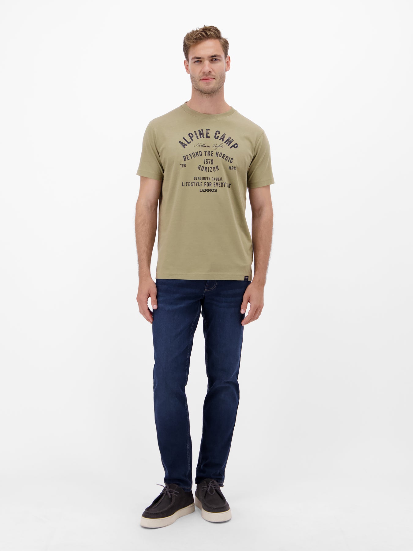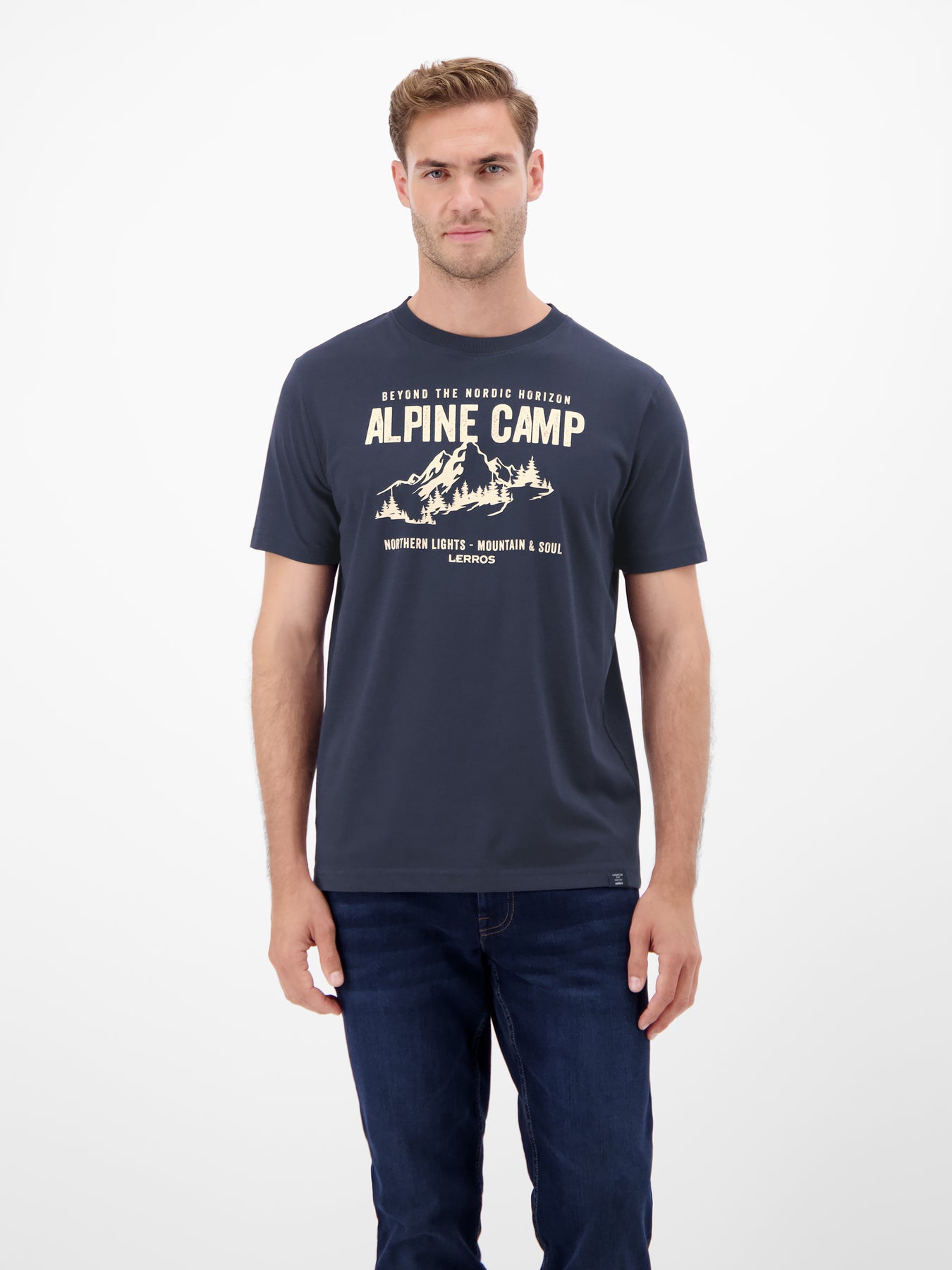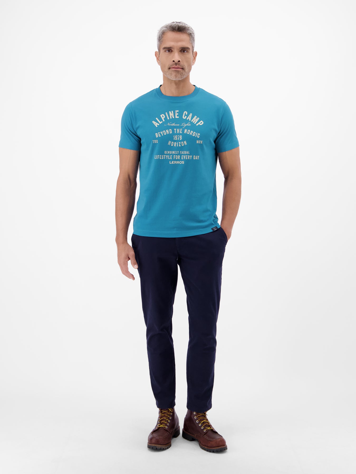 Modischer T-Shirtstyle in schmaler Passform (MODERN FIT) von LERROS mit Mottoprint und geripptem Rundhalsausschnitt. Das Shirt aus weicher, hochwertiger Baumwolle ist ein Must-Have für T-Shirt Liebhaber und ergänzt jedes Outfit auf sportive Art und Weise.Pflege: