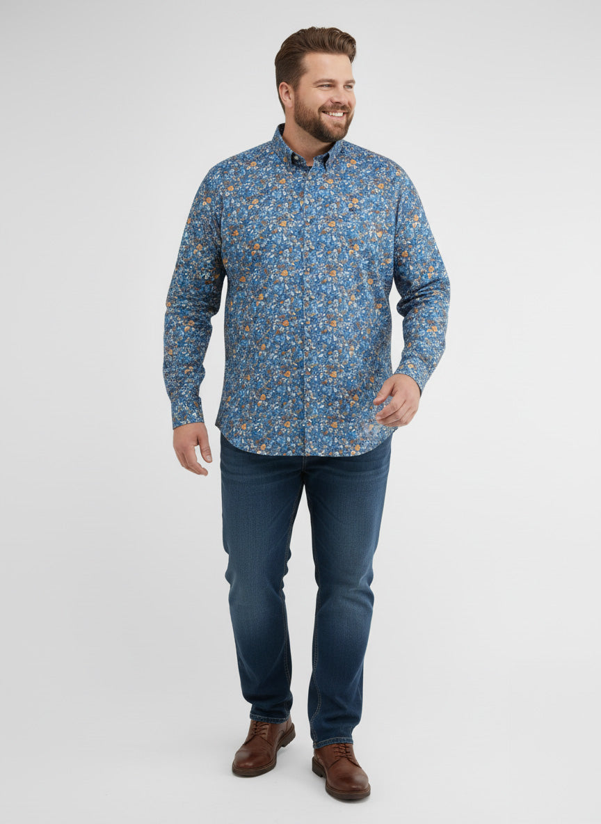 Dieses LERROS Langarmhemd in den Großen Größen 3XL bis 6XL bietet nicht nur höchsten Tragekomfort dank der weichen, dehnbaren Materialmischung, sondern zudem eine bequeme Passform. Der verdeckte Button-down-Kragen und das floral gestaltete Muster verleihen diesem Hemd eine moderne Note und bilden eine modische Grundlage für lässige Bürolooks oder einen urbanen Casual-Style. Dieses Herrenhemd ist ein vielseitiges Must-have für jeden Kleiderschrank.Pflege: