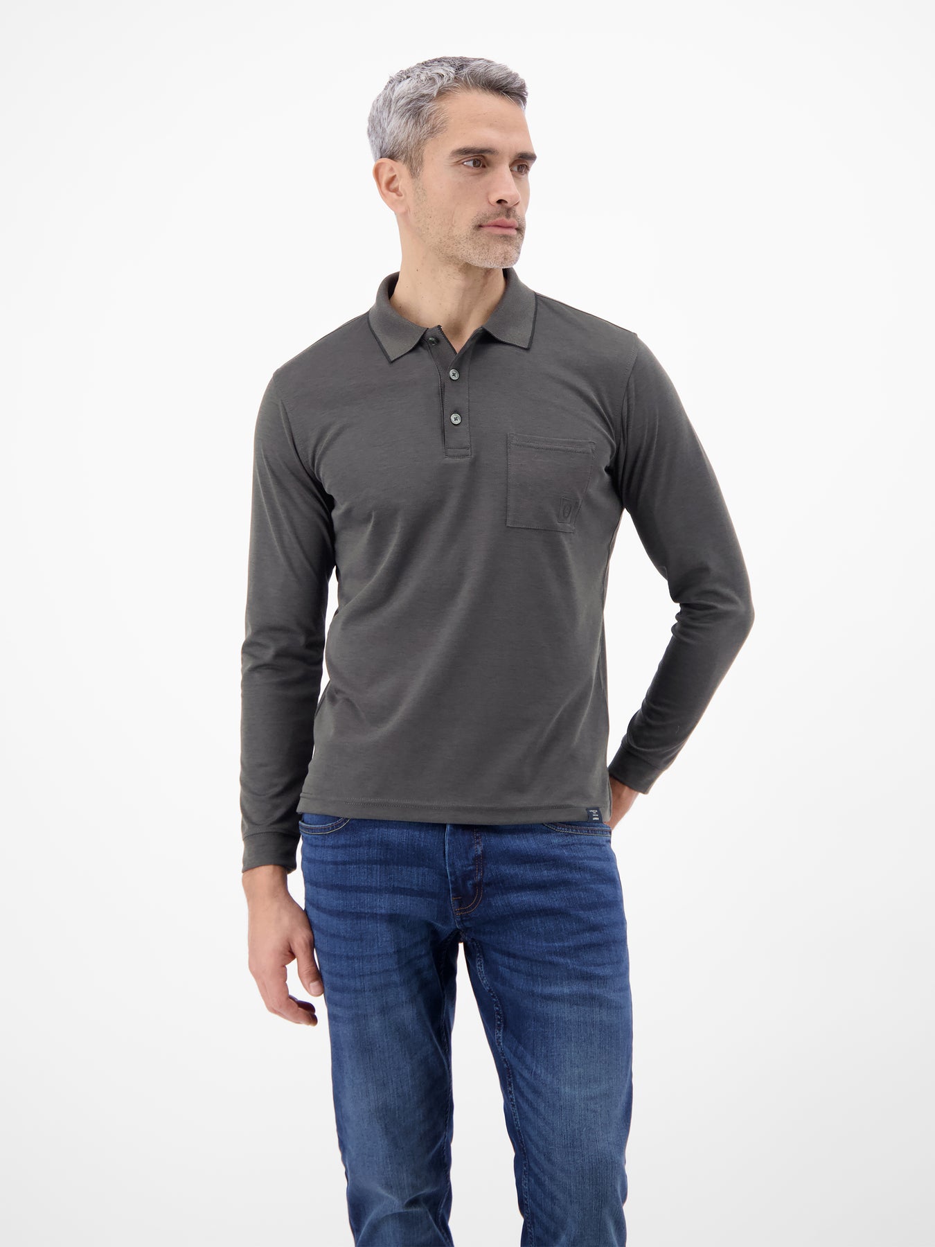 Langarm Polo mit Brusttasche aus Baumwollmix
