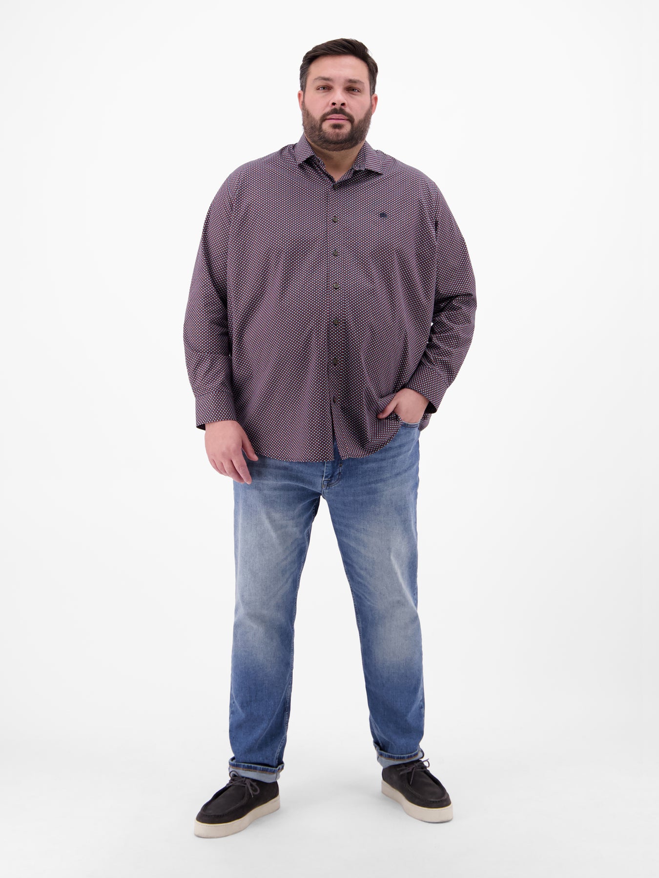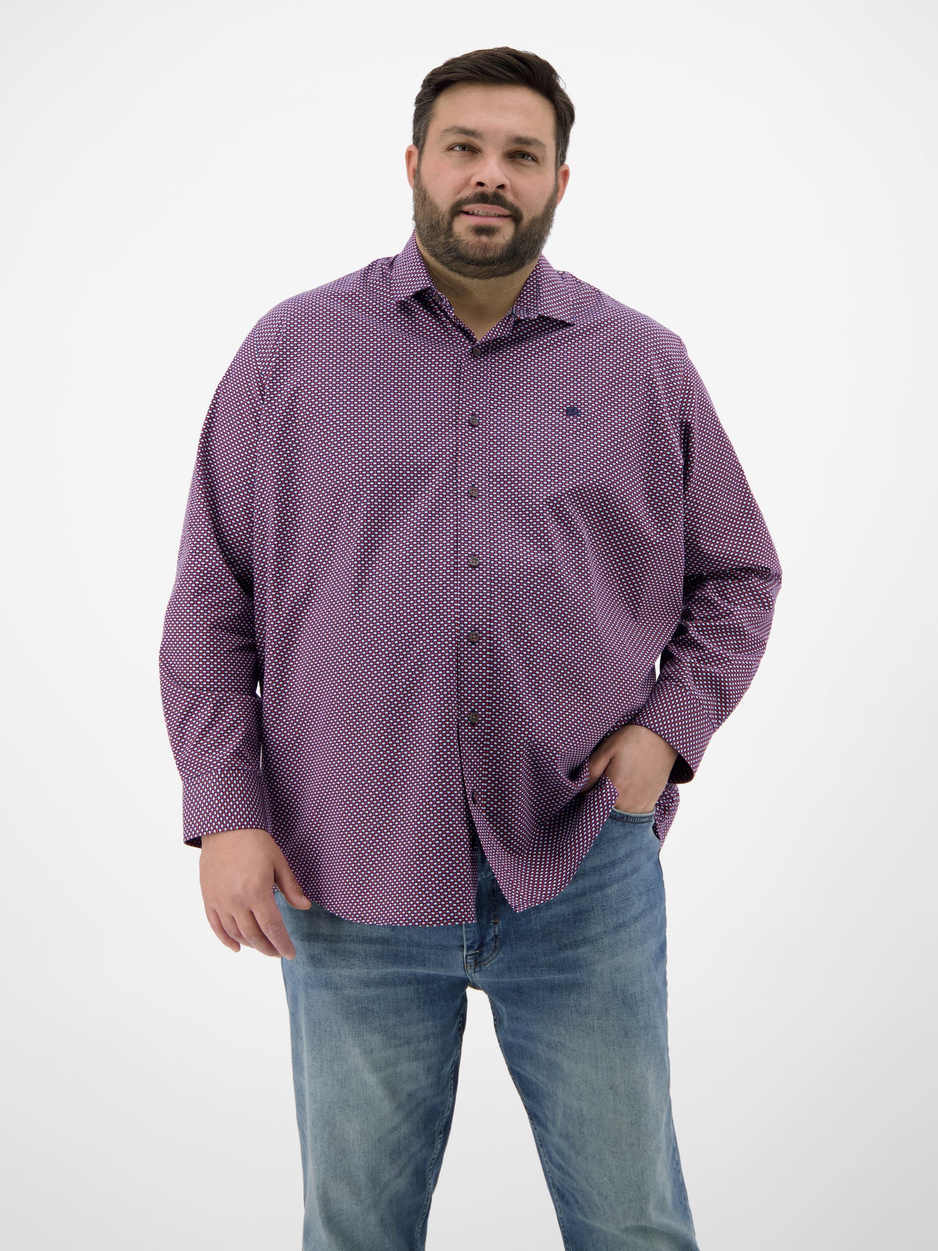Langarmhemd in Übergrössen, dezent gemustert