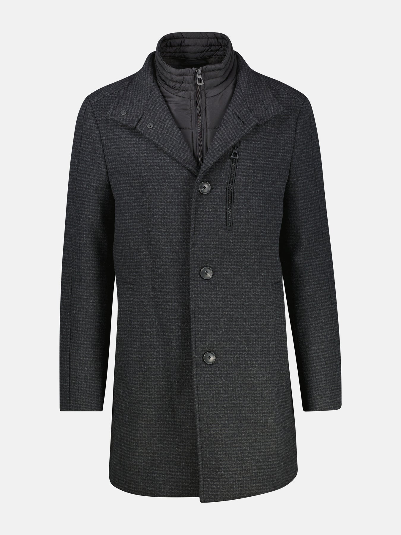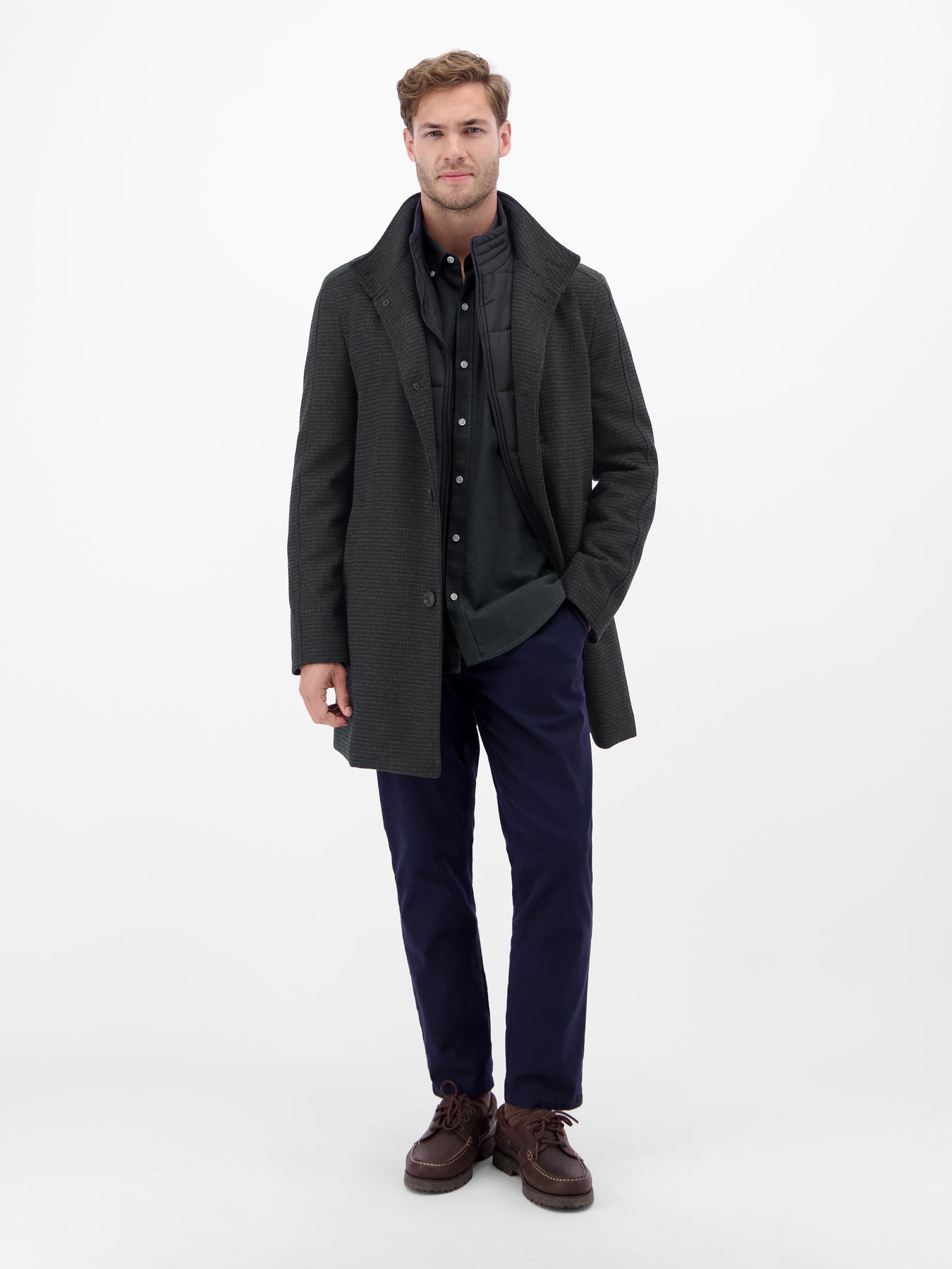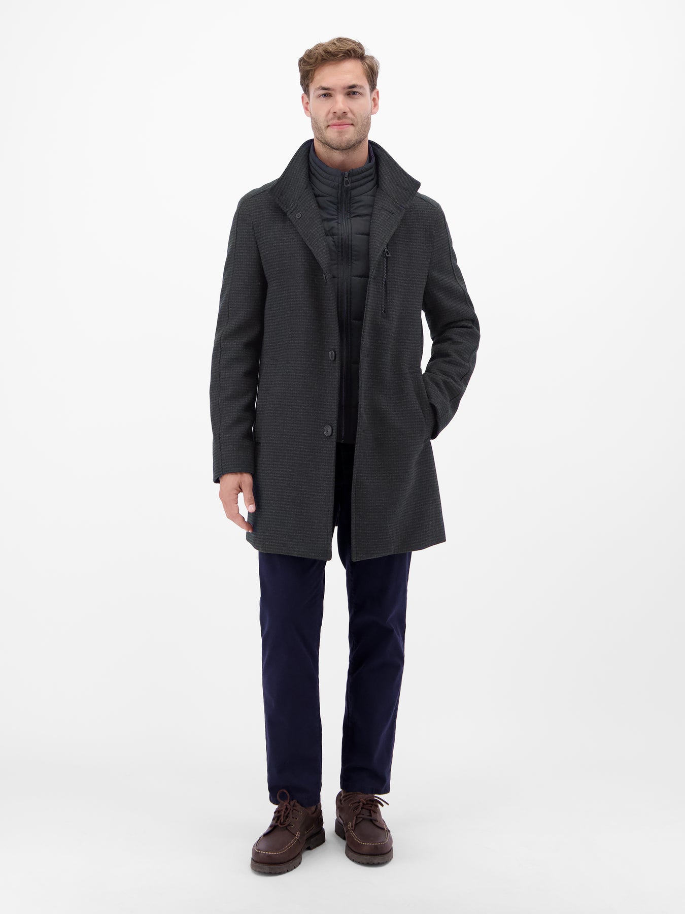 Dieser modische Herrenmantel von LERROS - hier in KURZGRÖSSEN - vereint zeitlose Eleganz mit praktischer Vielseitigkeit. Die edle Wolloptik verleiht ihm eine hochwertige Anmutung, während der herausnehmbare Westeneinsatz mit Rippkragen für zusätzliche Wärme sorgt, perfekt für wechselhafte Temperaturen. Ein stilvolles und praktisches Highlight ist die Brusttasche mit Reißverschluss. Ob im Business oder in der Freizeit, dieser Mantel ist ein idealer Begleiter für kühle Tage.Pflege: