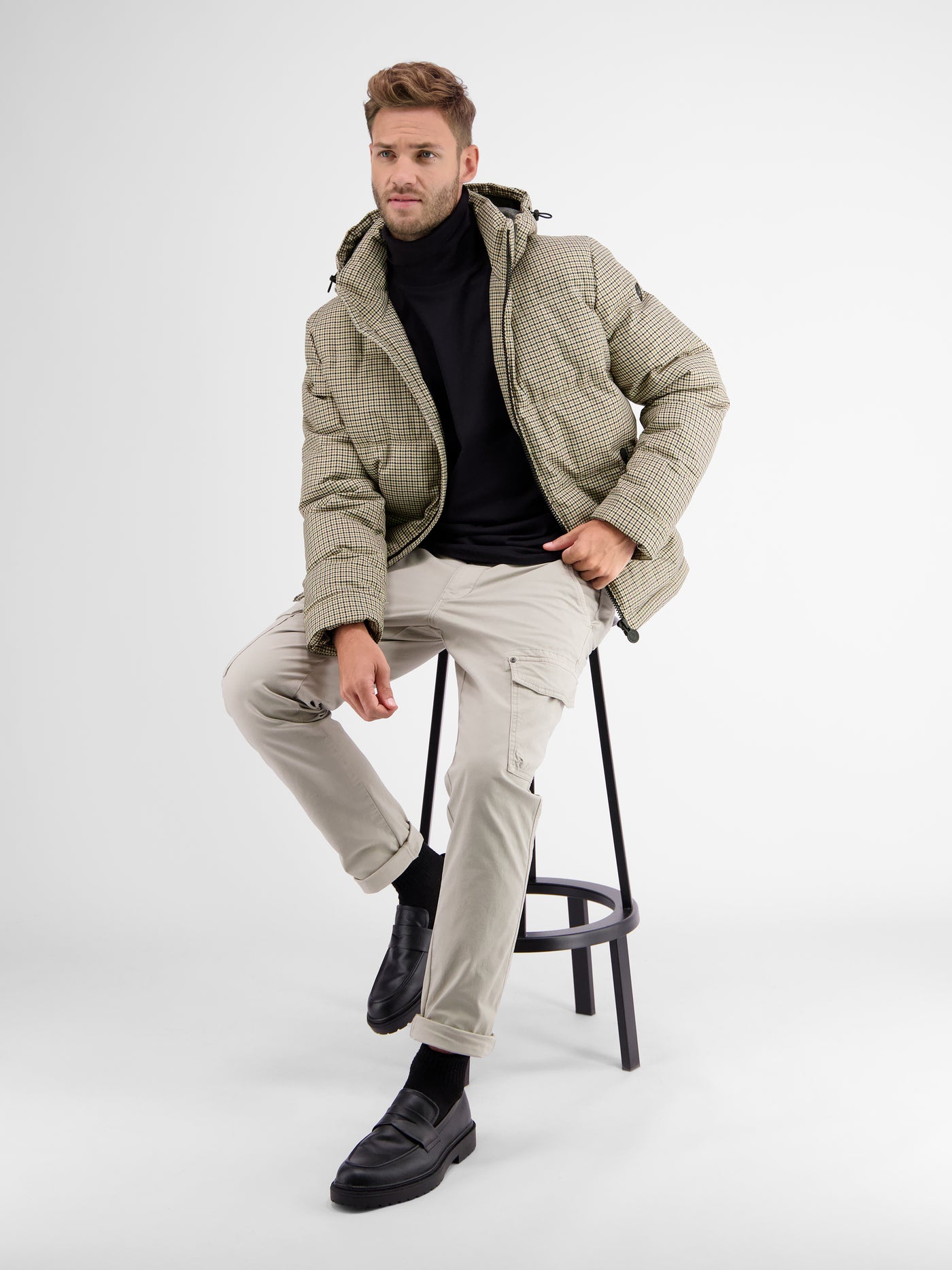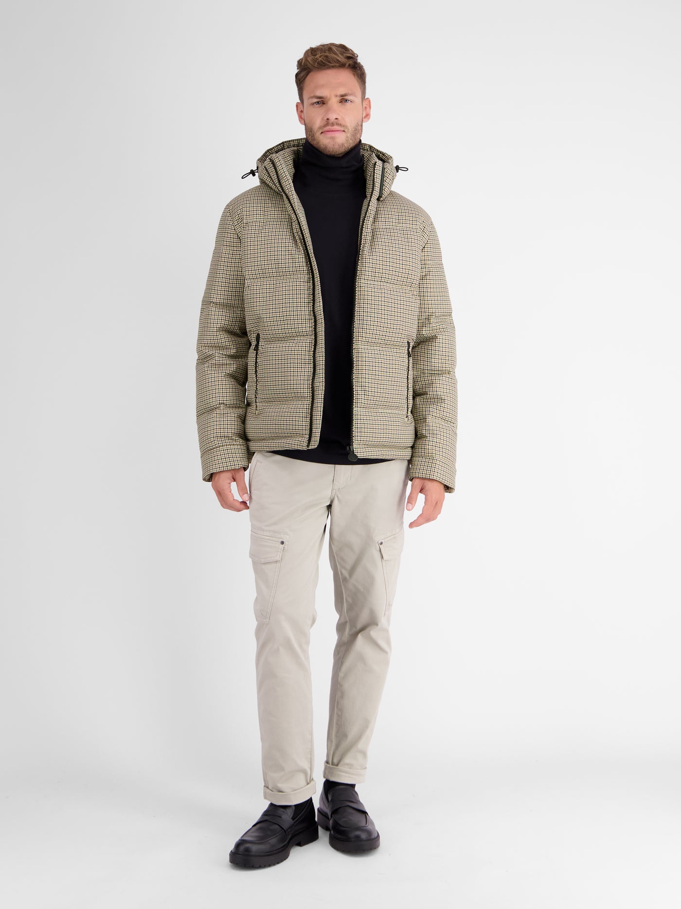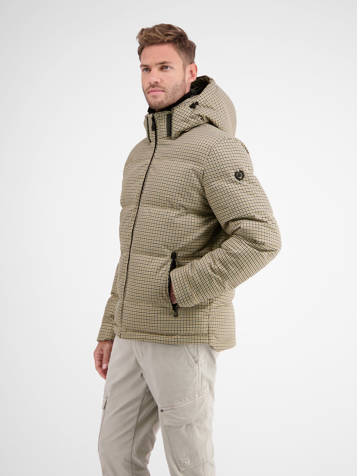 LERROS Steppjacke mit Minimal-Karomuster! Die hochschließende Kapuze mit Windstopperfunktion und das atmungsaktive, wasserabweisende Material komplettieren diese funktionale und modische Outdoorjacke.