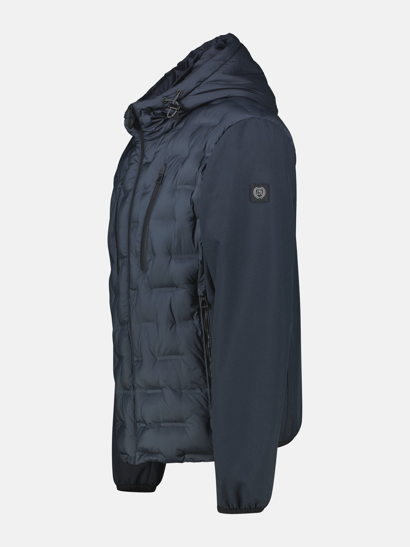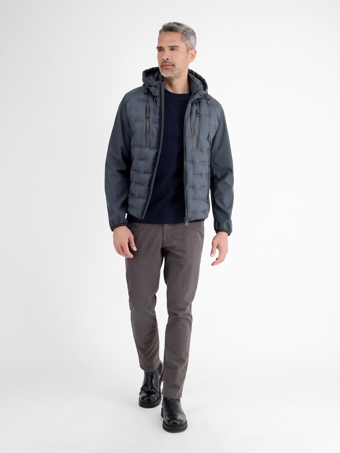 Unsere LERROS Hybrid-Jacke kombiniert die besten Eigenschaften aus zwei Welten: Das weiche, elastische Softshell-Material sorgt für Bewegungsfreiheit und Tragekomfort, während die gesteppte Vorderseite zusätzlichen Schutz und Wärme bietet. Zudem verleiht die Steppfront der Jacke in Ergänzung zur Kapuze mit Strickkragen einen modernen und trendigen Look.