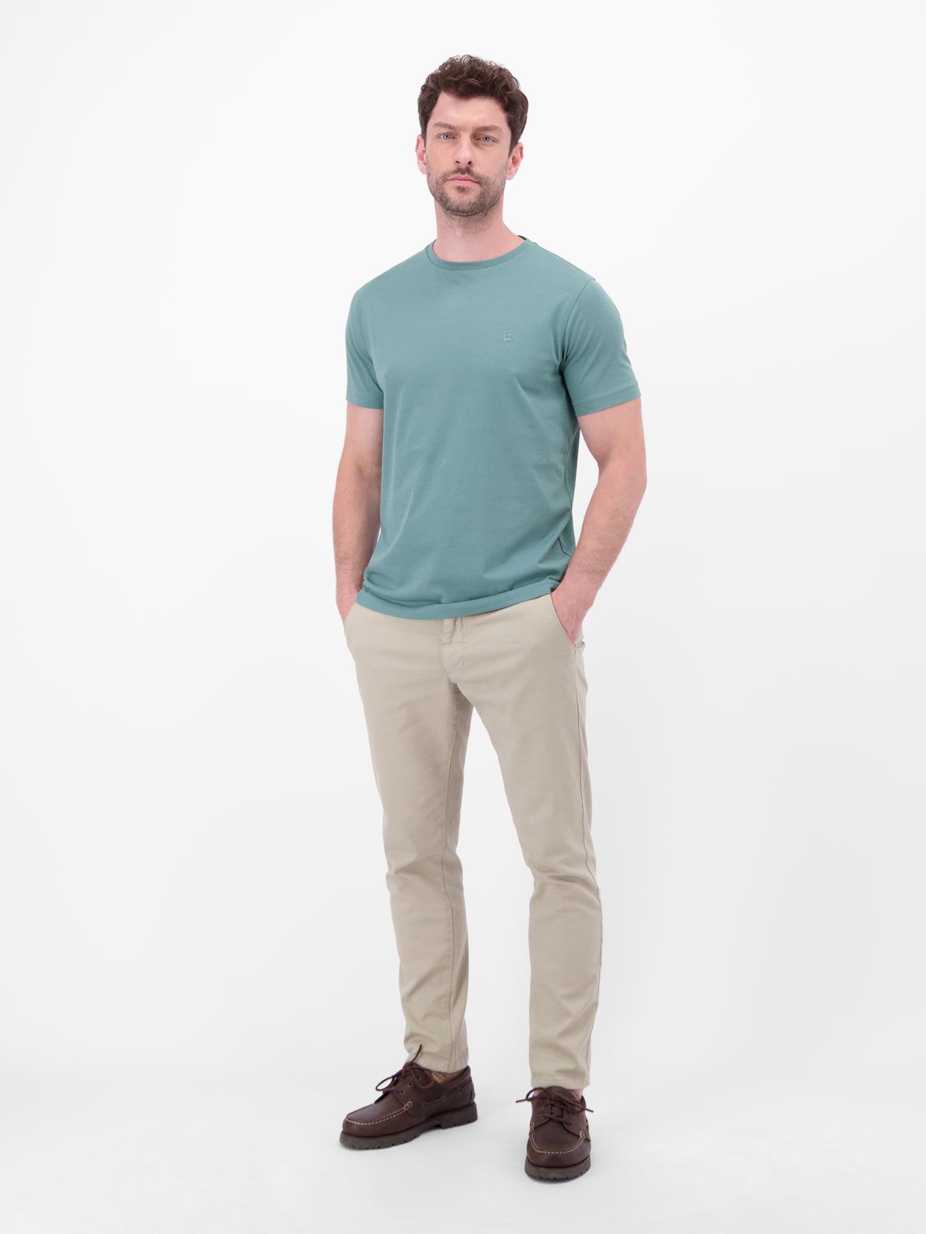 T-Shirt mit Rundhalsausschnitt aus 100% Baumwolle. Dieses T-Shirt in Jersey-Qualität mit 1/2-Ärmeln ist ein Must-have-piece für jeden Kleiderschrank. Das Shirt kann solo sowie als Layer unter dem Sweatshirt getragen werden. Für höchsten Tragekomfort sind die Bündchen am Halsauschnitt besonders flexibel Die Farbauswahl bei diesem Shirt lässt keine Wünsche offen. Die ideale Vorraussetzung, das T-Shirt zu verschiedenen Outfits zu kombinieren.Pflege: