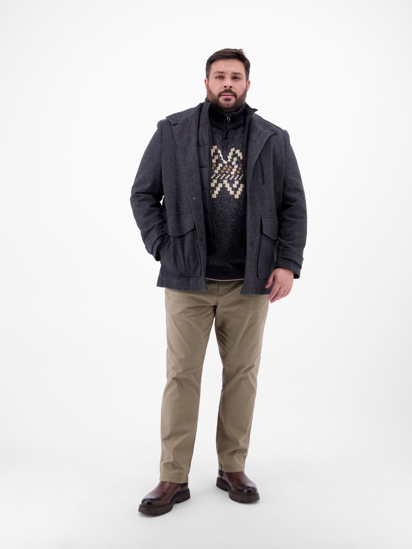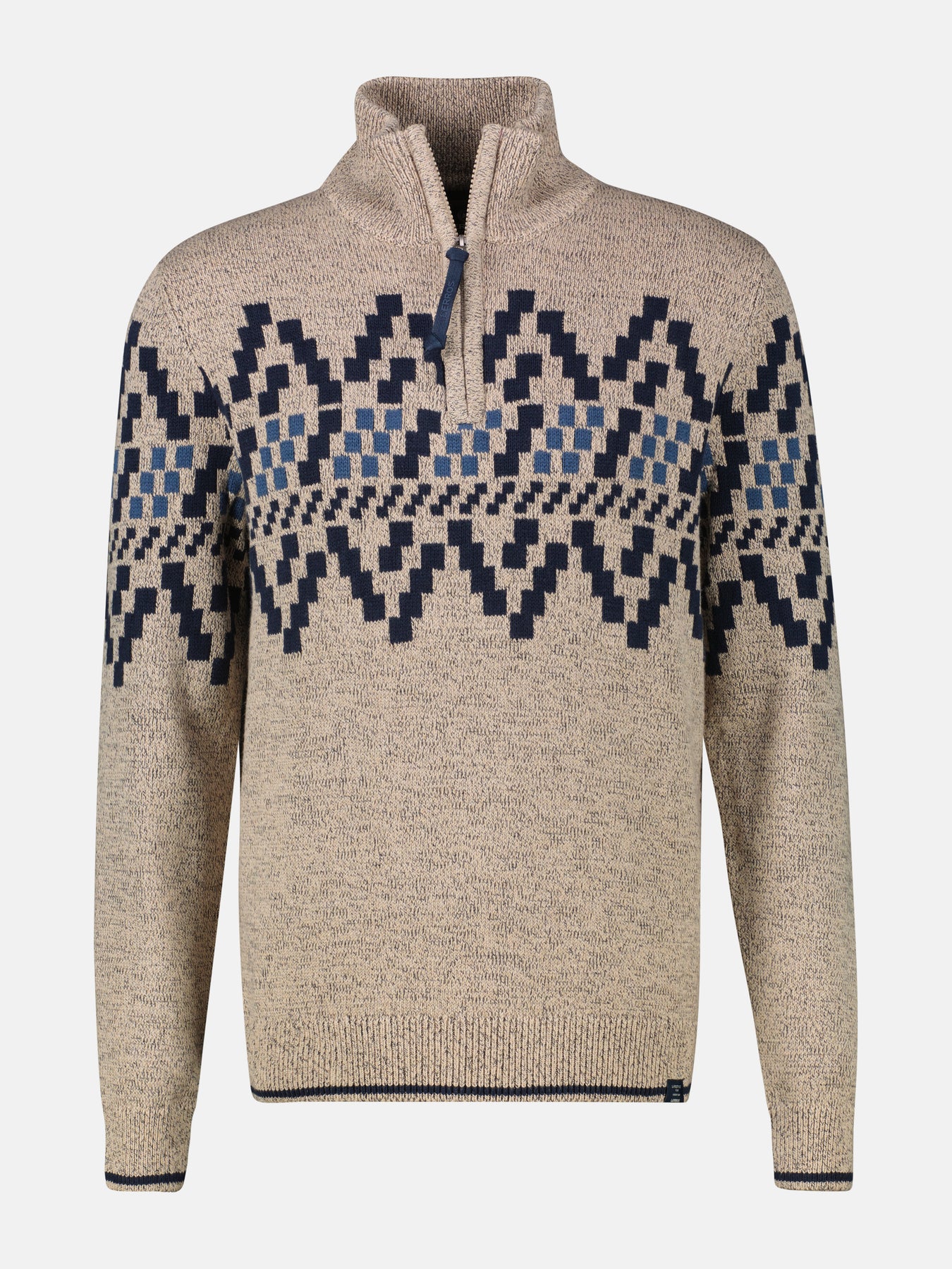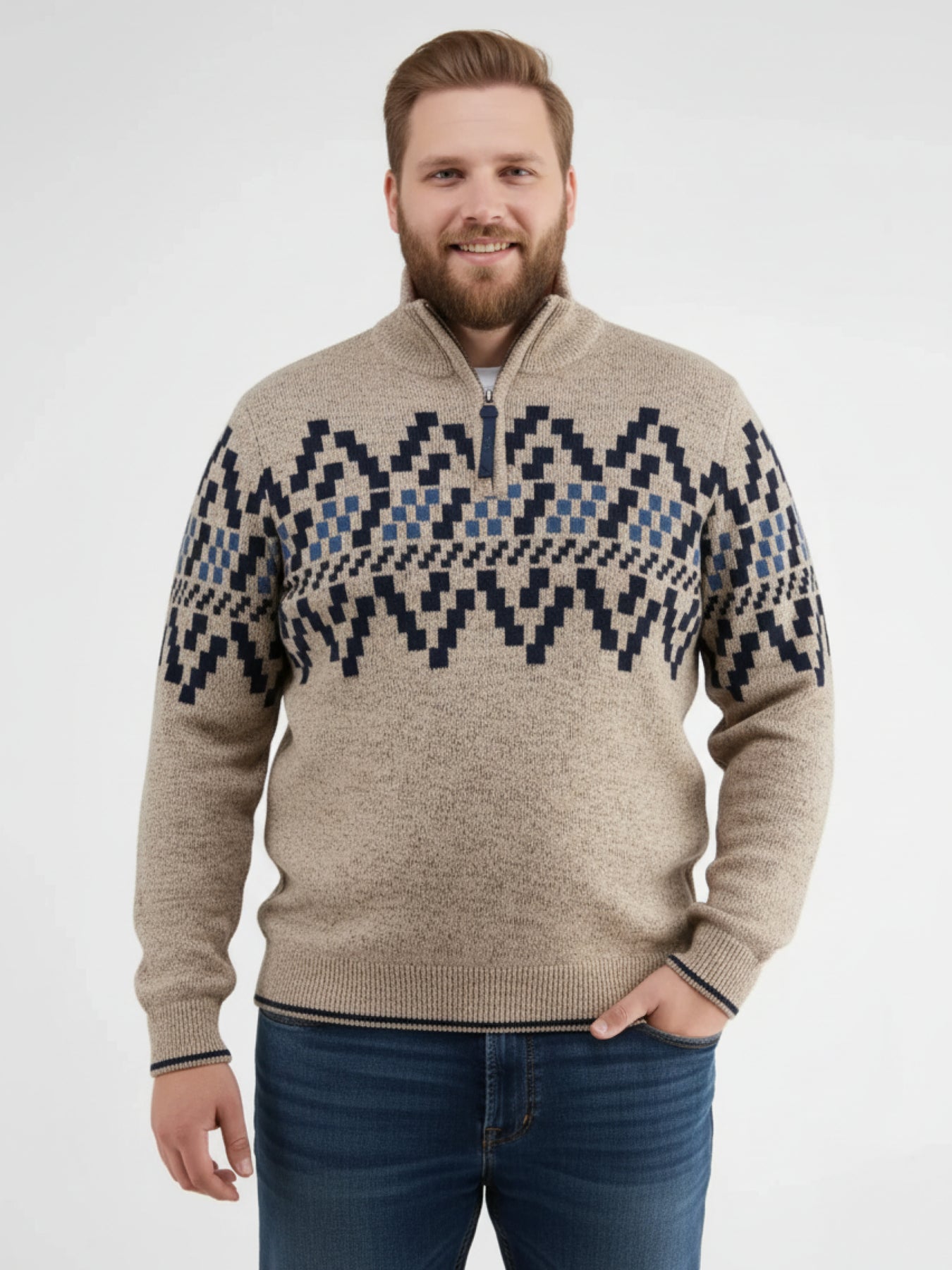 Auch in den Großen Größen 3XL bis 6XL - der LERROS Jacquard-Strickpullover überzeugt durch sein grafisch gestaltetes Norwergermuster und den funktionalen Troyerkragen. Der edle Look wird durch die hochwertige Materialqualität ergänzt, die für angenehme Wärme und Tragekomfort sorgt. Der Troyerkragen lässt sich je nach Bedarf hoch- oder runterklappen und schützt vor kühlerem Wetter. Ideal für den Übergang zwischen den Jahreszeiten oder als zusätzliches Layer in kälteren Monaten.Pflege: